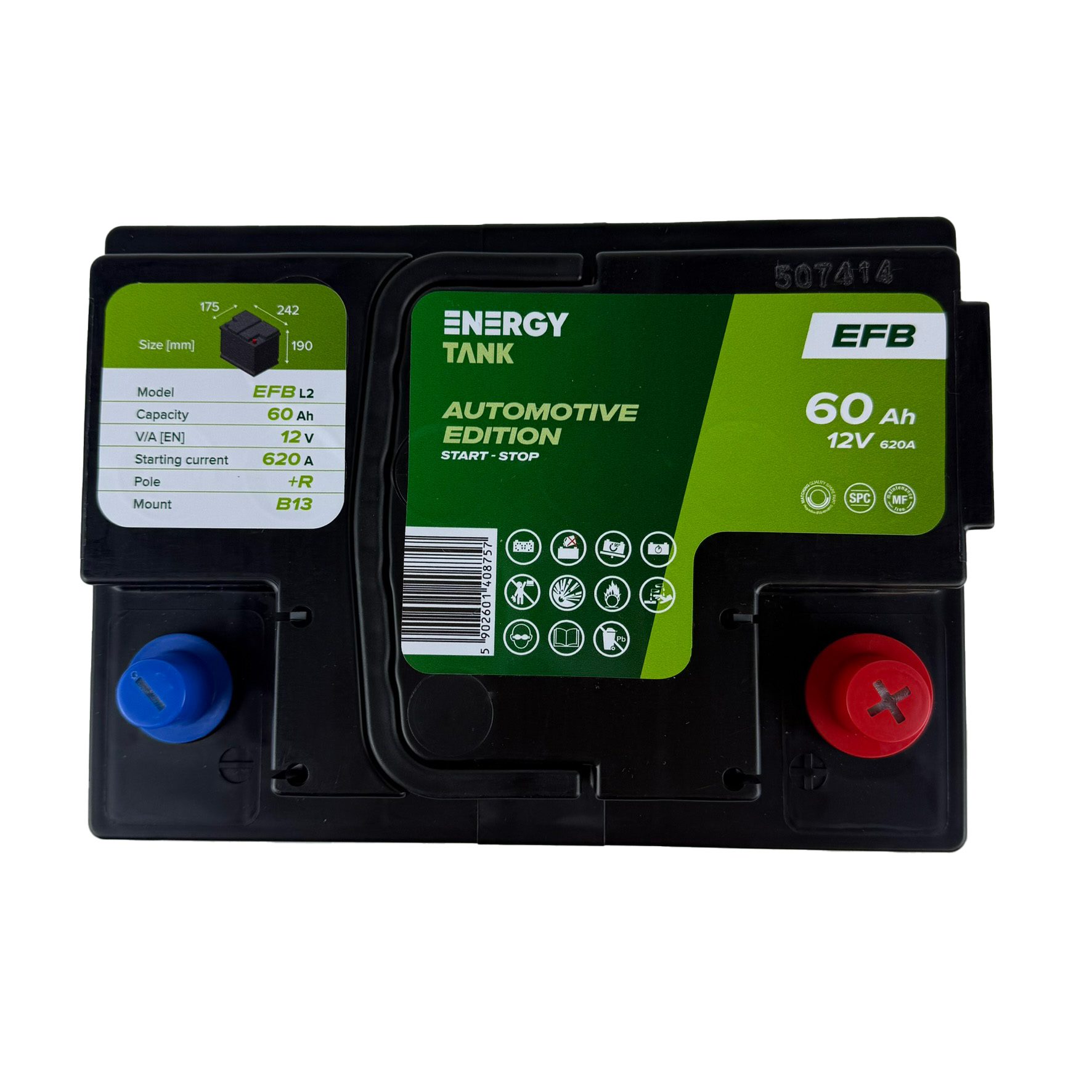 Akumulator EnergyTank EFB 60Ah to nowoczesny akumulator rozruchowy w technologii EFB (Enhanced Flooded Battery), będącej udoskonaloną wersją standardowych akumulatorów kwasowo-ołowiowych. Dzięki zastosowaniu wzmocnionych płyt oraz ulepszonych separatorów oferuje wyższą odporność na głębsze rozładowania i częstsze cykle pracy.